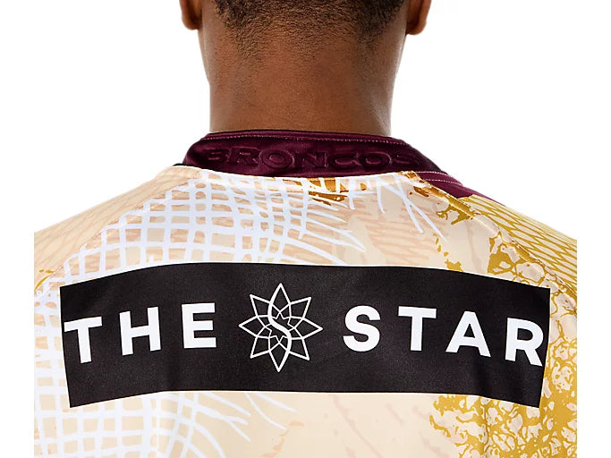 The BRISBANE BRONCOS INDIGENOUS JERSEY features a striking Indigenous artwork designed by a talented local Indigenous artist.